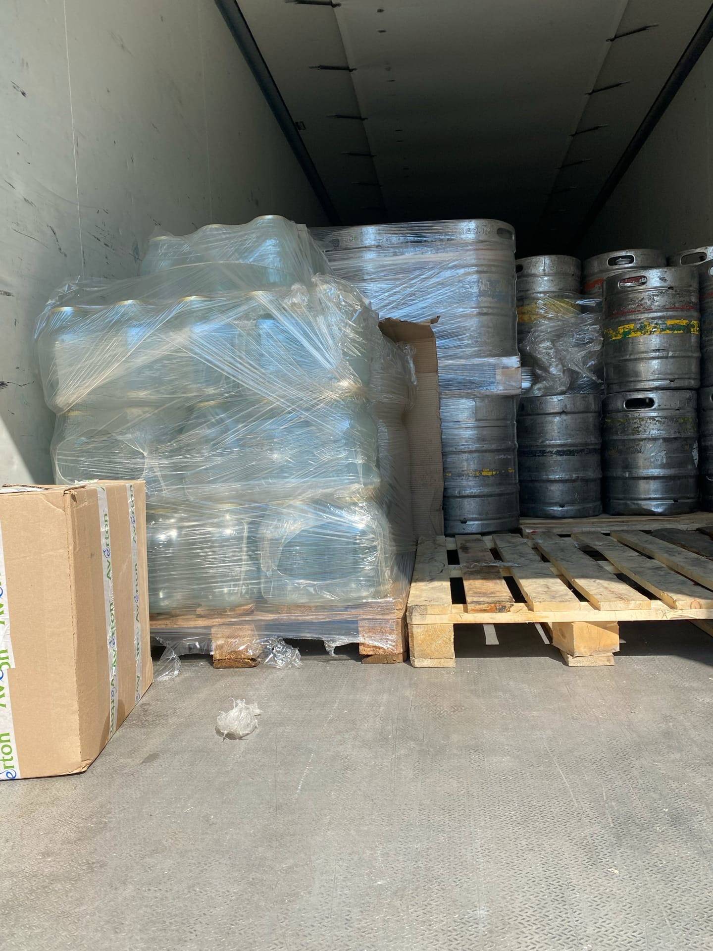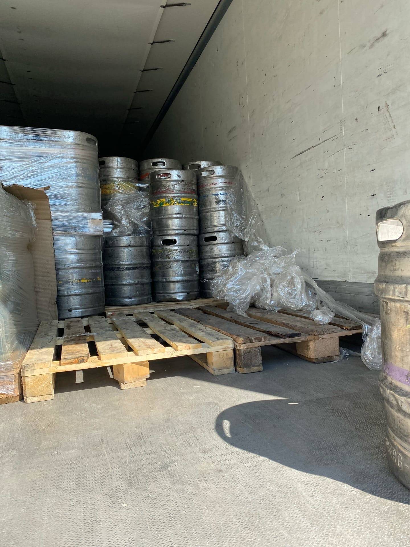 Разгрузка а/м Газель с пивными кегами.